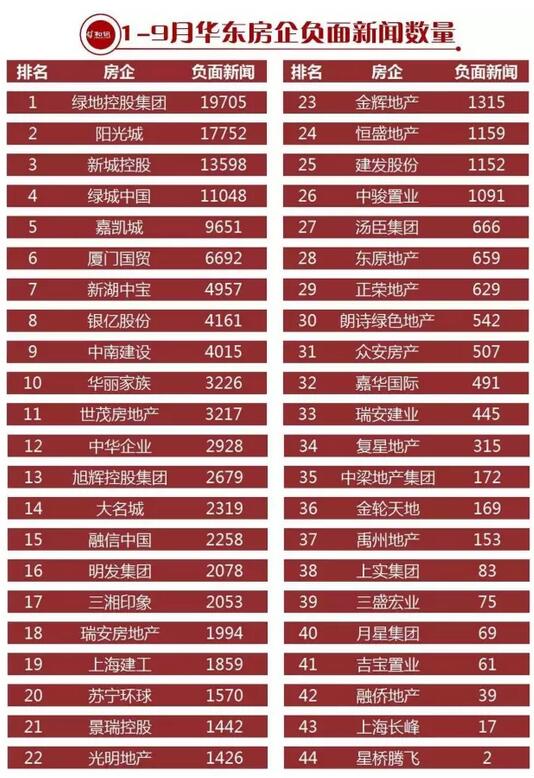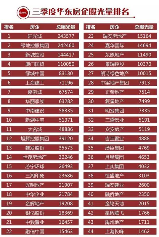 收藏 华东房企三季度品牌影响力排名:领先者面临被超越