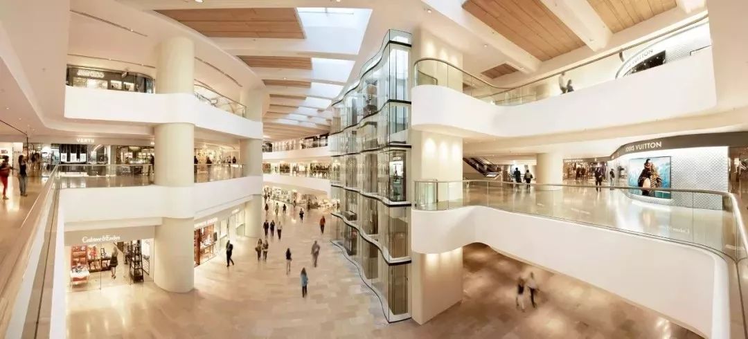 与扶手梯不同的是,垂直电梯的设置是为了便捷,但不遮挡商铺视线,因为它体积大,占地方,视觉上难以通透,摆在中庭,比一般的柱子还要“堵心”,这在以往多个商场都可看到。