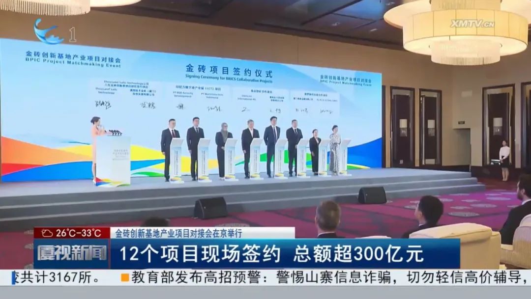近期,金砖创新基地产业项目对接会在北京举行,12个金砖项目集中签约,签约总额超300亿元。